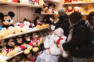 Aちゃんがディズニーランドで一番楽しみにしていたのは、ショッピング。女の子はみんなお買い物大好きです。ゲートを入るとカラフルなお店が並び、目移りしますが、せっかくなので順番に見ていくことにしました。