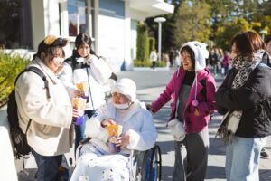 そして、Aちゃんディズニーデビューの日、昨日の雨が噓のような青空が広がっていました。お迎えに行くと、楽しみでよく眠れなかったそう。でも、顔色はよく少し笑顔も見せてくれてちょっと安心。2時間ほどのドライブでパークに到着しました。パークでは、今日の旅の仲間、スタッフなおちゃんとサポーターさん、そして関西からはラブグラフいまむさんが待っていてくれました。